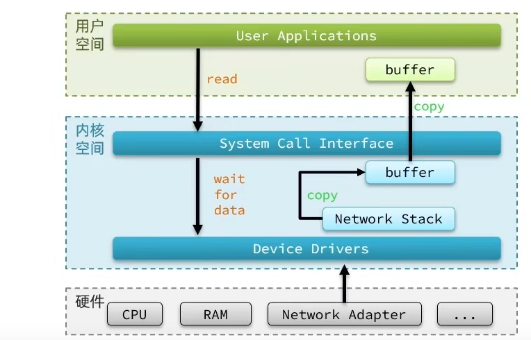 他会由内核将所有数据处理完成后,由内核将数据写入到用户态中,然后才算完成,所以性能极高,不会有任何阻塞,全部都由内核完成,可以看到,异步IO模型中,用户进程在两个阶段都是非阻塞状态。