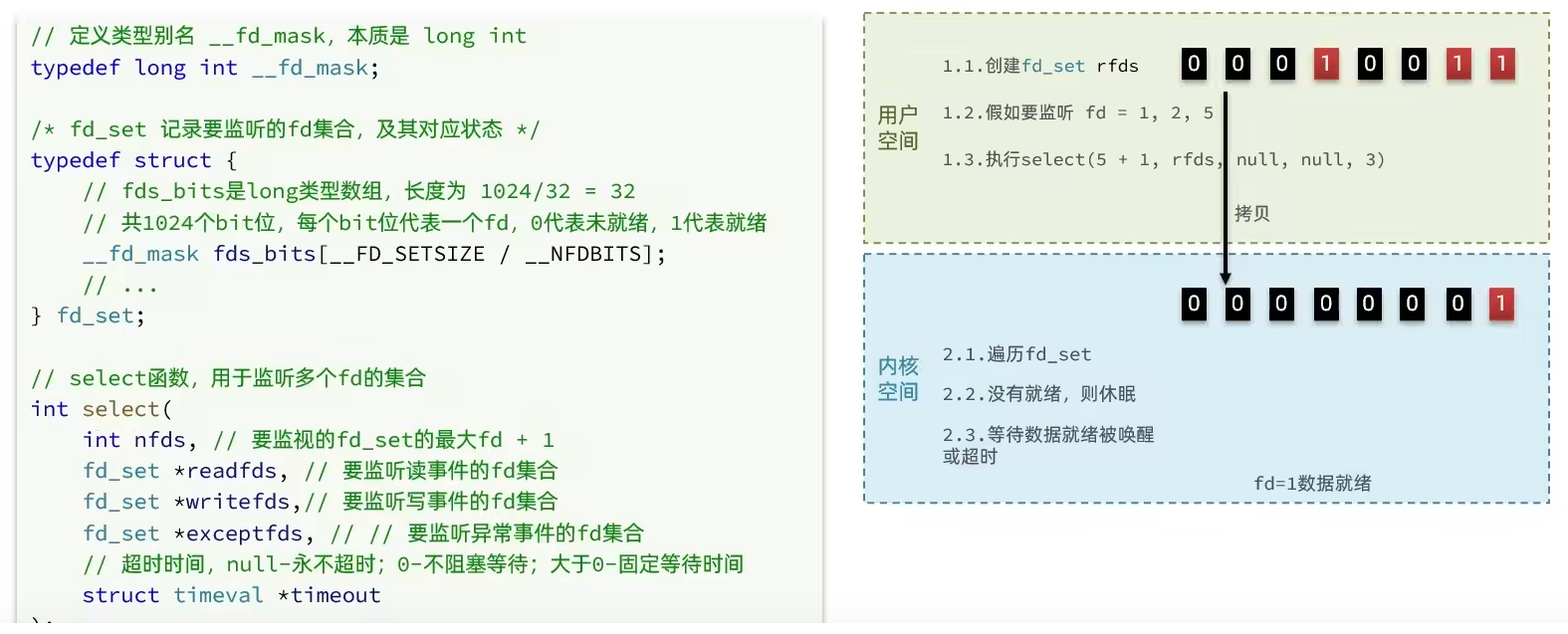 - 每次select都需要把所有要监听的FD都拷贝到内核空间