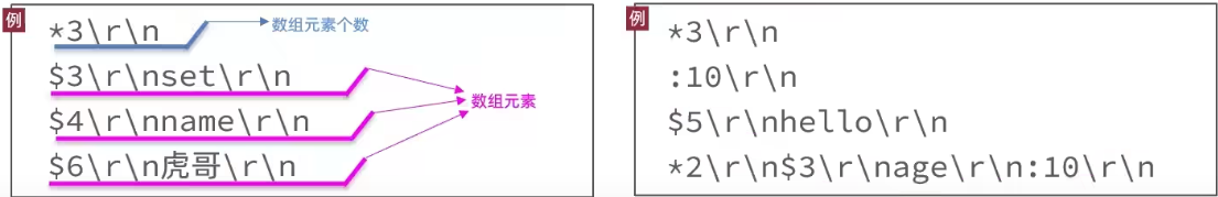 - 数组:首字节是 ‘*’,后面跟上数组元素个数,再跟上元素,元素数据类型不限